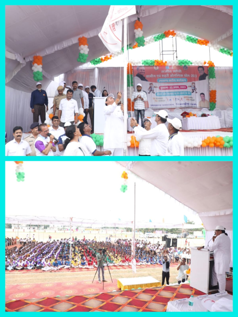 निम्बाहेड़ा : राजस्थान सरकार के सहकारिता मंत्री उदयलाल आंजना के मुख्य आतिथ्य में शनिवार को नगर के स्थानीय डाॅ. भीमराव अम्बेडकर राजकीय महाविद्यालय के खेल मैदान परिसर में ध्वज चढ़ाकर राजीव गांधी ग्रामीण एवं शहरी ओलम्पिक खेलों का शुभारंभ किया।