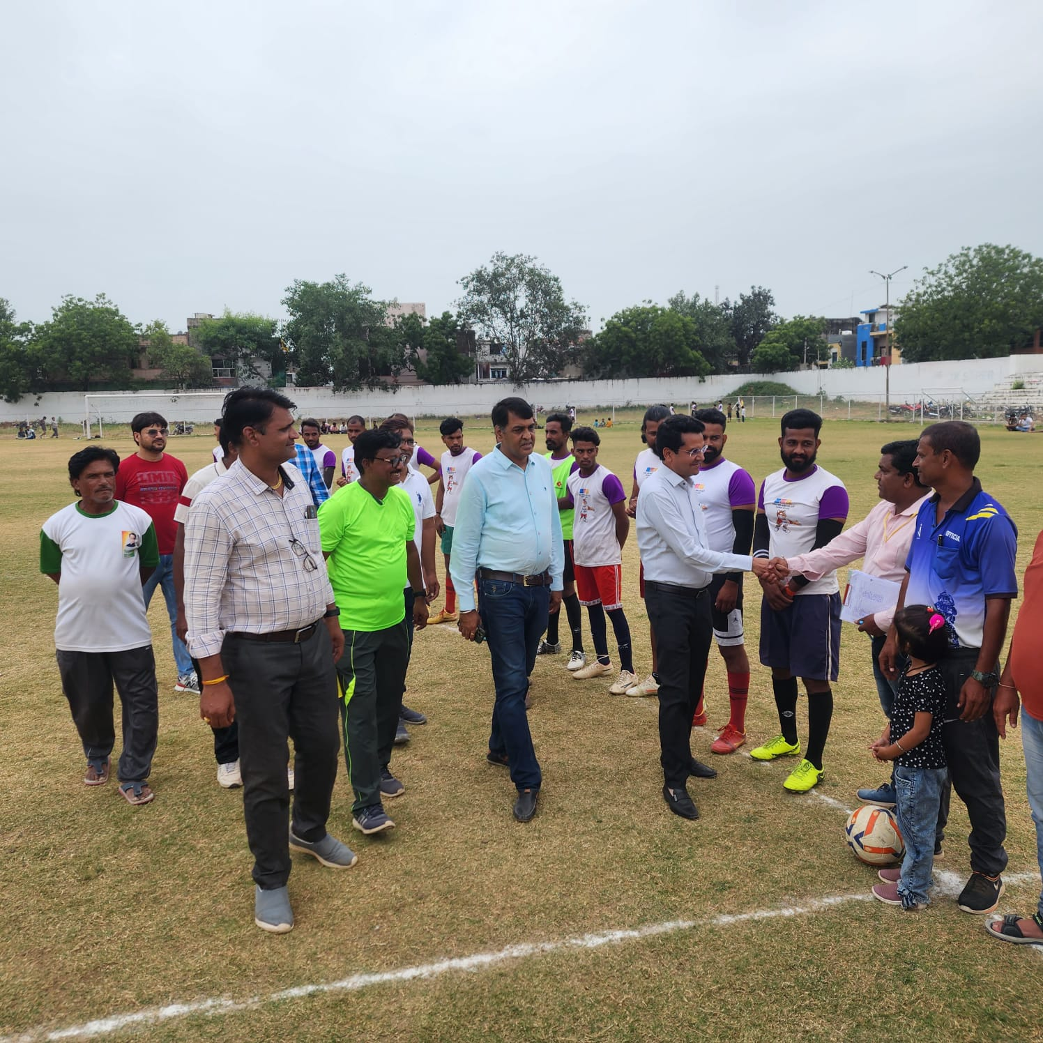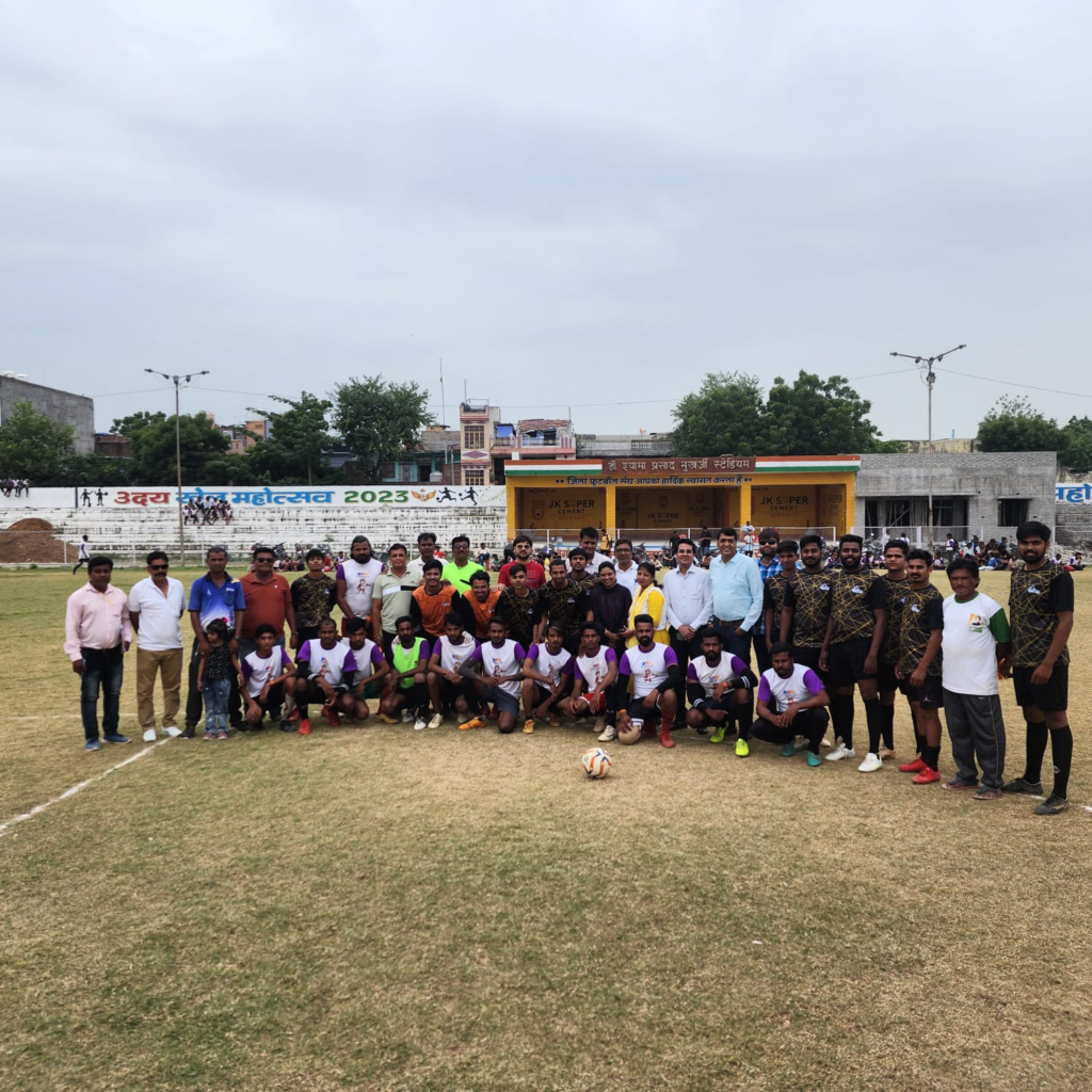 निम्बाहेड़ा : राजस्थान सरकार के सहकारिता मंत्री उदयलाल आंजना के विशेष प्रतिनिधि एवं जिला फुटबाॅल संघ अध्यक्ष पूरण आंजना के मुख्य आतिथ्य में व जिला फुटबॉल संघ कोषाध्यक्ष मनोज पारख के विशिष्ट आतिथ्य में शनिवार को नगर के जनता मैदान के ग्रास फील्ड में राजीव गांधी ग्रामीण ओलम्पिक खेल के अन्तर्गत बाड़ी एवं नरसिंह गढ़ सेमीफाइनल मेंच का शुभारंभ हुआ।