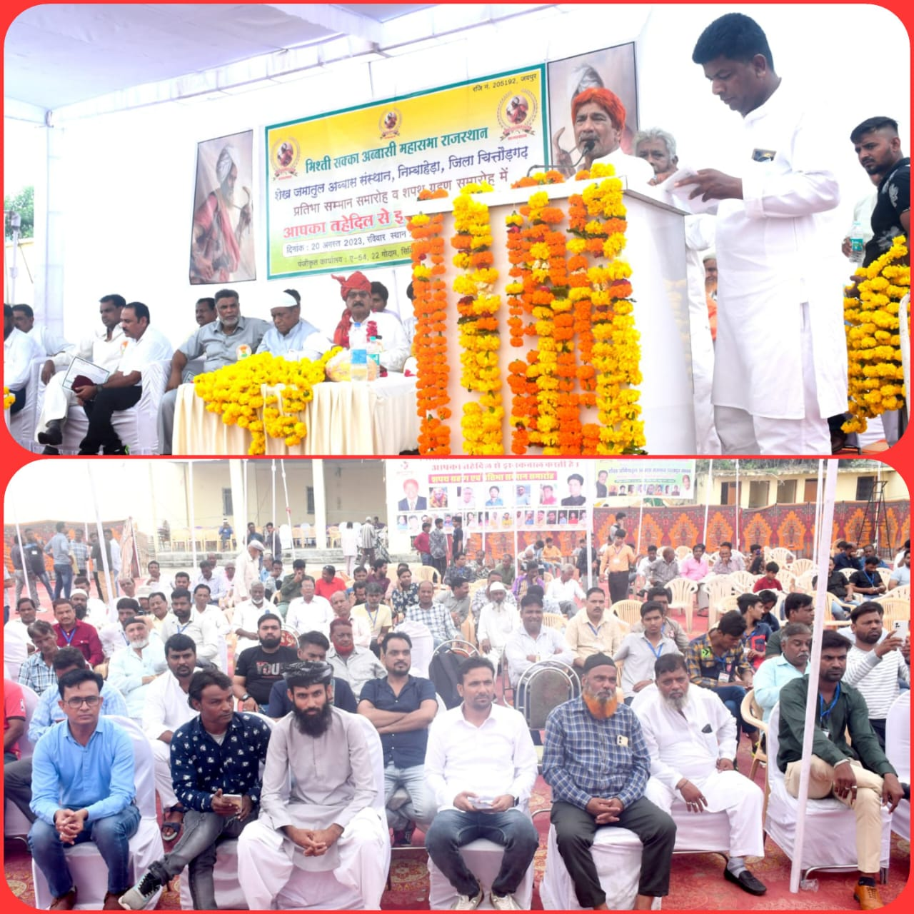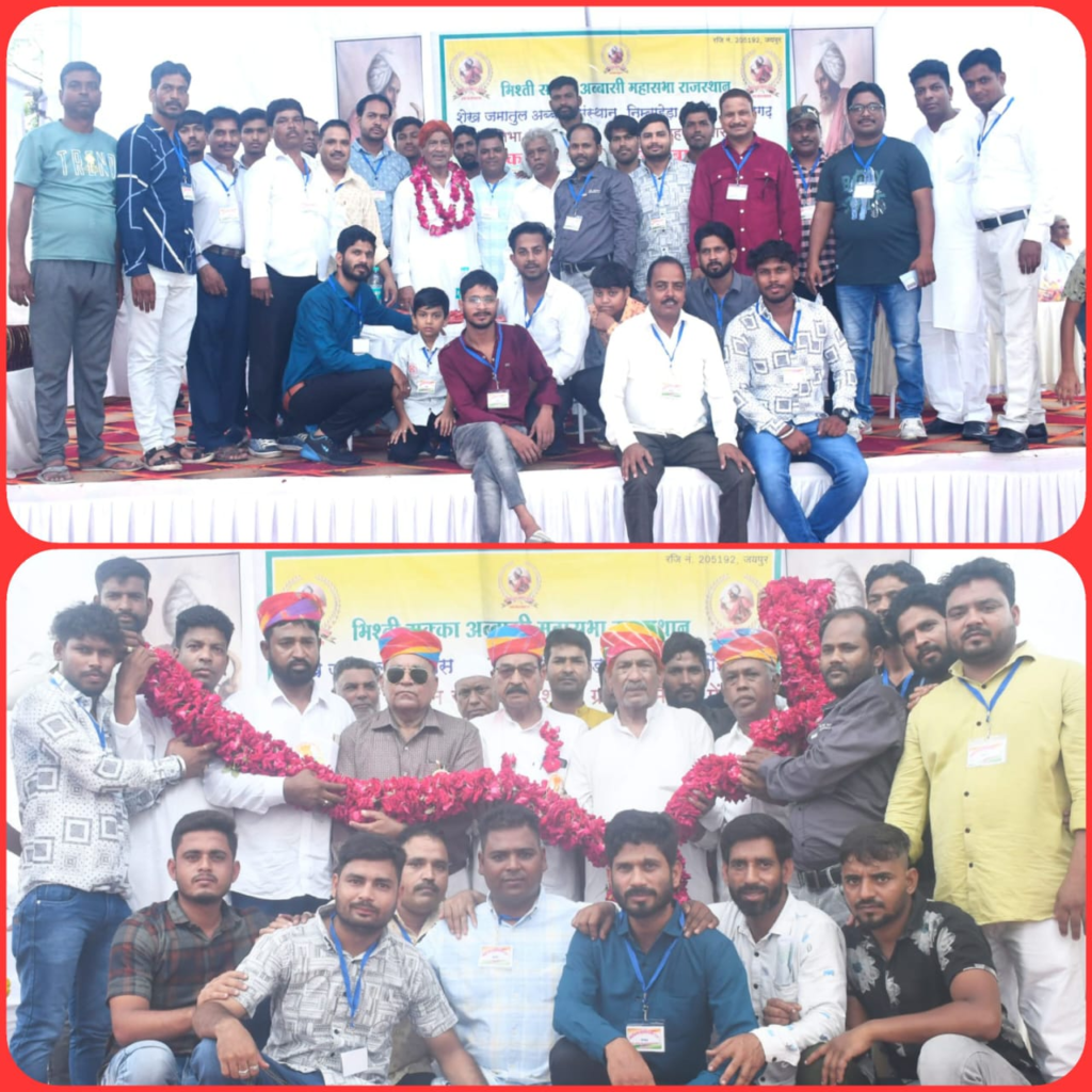 निंबाहेड़ा : नगर के आदर्श कॉलोनी में स्थित कम्युनिटी हॉलमें रविवार को भिश्ती सक्का अब्बासी महासभा राजस्थान एवं शेख जमातुल अब्बास सेवा संस्थान के संयुक्त तत्वाधान में प्रदेश स्तरीय प्रतिभा सम्मान समारोह एवं नवनियुक्त कार्यकारिणी का शपथ ग्रहण समारोह रखा गया। कार्यक्रम के मुख्य अतिथि निंबाहेड़ा नगर पालिका अध्यक्ष सुभाष चंद्र शारदा थे कार्यक्रम की अध्यक्षता याकूब हुसैन अब्बासी ने की।कार्यक्रम के विशिष्ट अतिथि जिला आयोजना समिति सदस्य व पार्षद मनोज पारख,अतिथि मोहम्मद सईद मानव,हाजी शकील अब्बासी, मोहम्मद सलीम अशरफी,हाजी यूसुफ अब्बासी, अय्यूब खान अब्बासी, हफीज खां अब्बासी, शफी मोहम्मद अब्बासी,मोहम्मद हुसैन अब्बासी, मजीद खां अब्बासी,मुन्ना खां अब्बासी,जहूर खां अब्बासी, ,मुन्ना खां अब्बासी बांसी एवं सोनू अब्बासी थे।