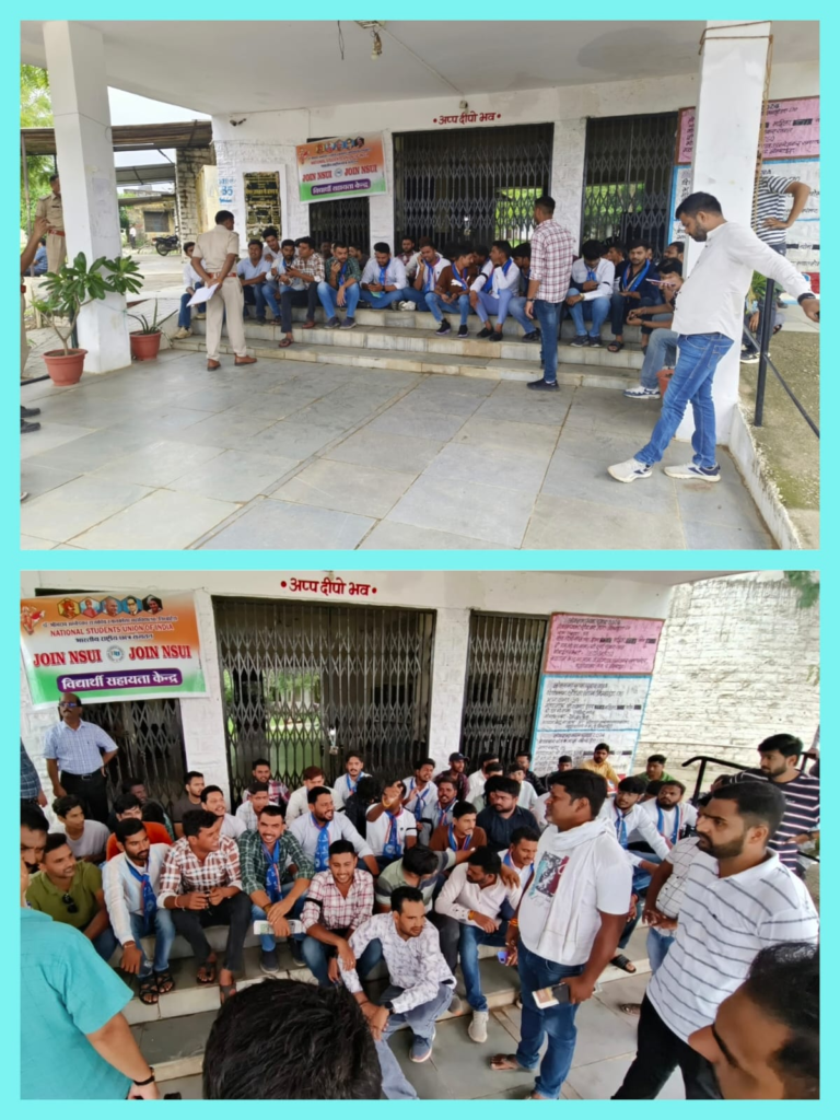 विद्यार्थी के साथ मारपीट के विरोध में युवा कांग्रेस-एनएसयूआई ने दिया महाविद्यालय में धरना, कॉलेज पर जड़ा ताला, काली पट्टी बांध जताया विरोध