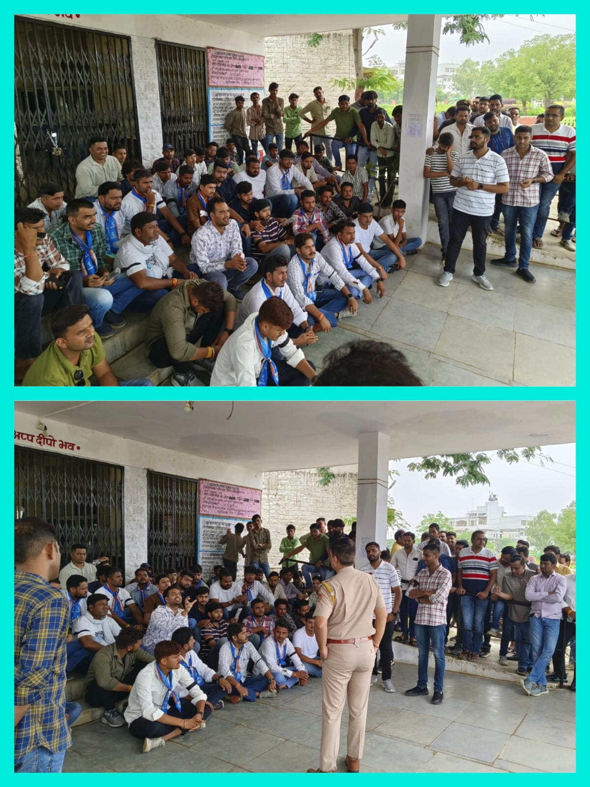पूर्व छात्रसंघ अध्यक्ष कन्हैयालाल धाकड़ एवं रोमिल चौधरी ने बताया कि शुक्रवार को विद्यार्थी के साथ हुई मारपीट के विरोध में युवा कांग्रेस एवं एनएसयूआई ने कॉलेज में धरना प्रदर्शन करते हुए प्रशासन के सम्मुख तीन मांगे उठाई जिसमें उक्त पीड़ित विद्यार्थी की रिपोर्ट पर एफआईआर दर्ज करने, अपराधियों को 2 दिन में गिरफ्तार करने एवं महाविद्यालय में स्थाई रूप से दो पुलिस कांस्टेबल अथवा होमगार्ड के जवान तैनात करने की मांगे प्रमुख थी, साथ ही महाविद्यालय प्रशासन से अपराधियों के विरुद्ध अलग से प्रकरण दर्ज करवाने की मांग भी उठाई गई। उपखंड अधिकारी सहित थाना अधिकारी ने हमारे सभी मांगे मानी जिसके फलस्वरुप हमने धरना समाप्त किया, धरना समाप्त करते हुए सभी कार्यकर्ताओं ने प्रशासन से मांग की है कि उक्त मामले में सख्त कार्यवाही की जाए अन्यथा हम शुक्रवार के दिन जिला कलेक्ट्री पर जाकर धरना प्रदर्शन करेंगे।