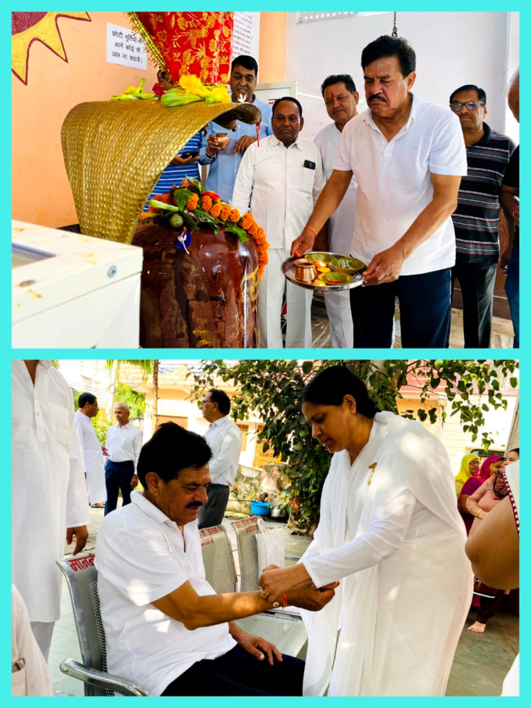 नीलकंठ महादेव मंदिर पहुंच क्षेत्र में अच्छी वर्षा एवम् खुशहाली की कामना की वार्डवासियो ने मंत्री आंजना की कलाई पर बांधा रक्षासूत्र