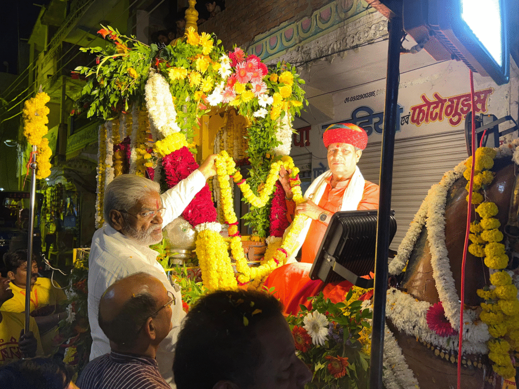 पूर्व सहकारिता मंत्री उदयलाल आंजना की ओर से बुधवार शाम 6:30 बजे नया बाजार में कांग्रेस कार्यकर्ताओं ने शोभायात्रा पर पुष्पवर्षा की। इस दौरान नगर कांग्रेस कमेटी अध्यक्ष बंशीलाल राईवाल और क्रेता व्यापार संघ के पूर्व अध्यक्ष बाबूलाल आंजना ने रथ में विराजित श्री बजरंग बली की तस्वीर पर माल्यार्पण कर नमन किया। उन्होंने क्षेत्र में सुख, शांति, समृद्धि और भाईचारा बनाए रखने की कामना की।